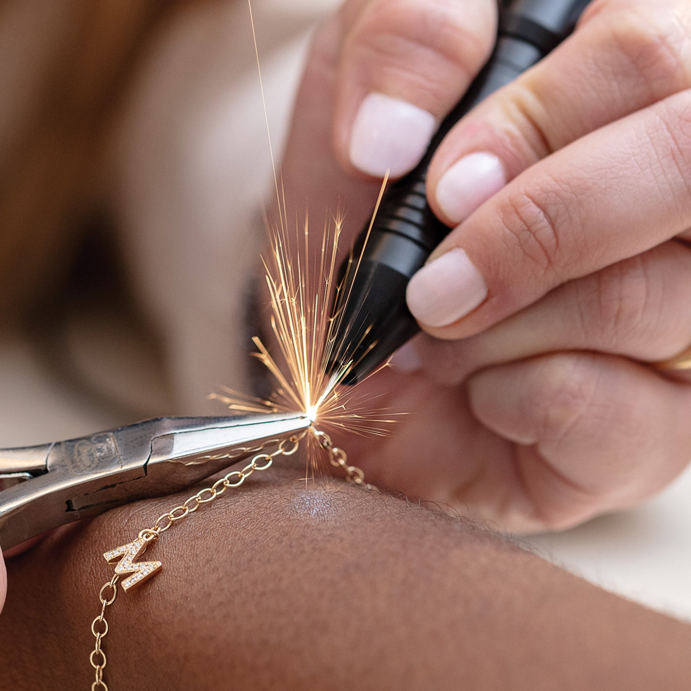 Inspired by the iconic friendship bracelet, permanent jewellery is chain that is soldered directly to the wearer either around the wrist or neck. Forge a lifelong memory with a partner, family member or best friend with our selection of permanent welded jewellery.